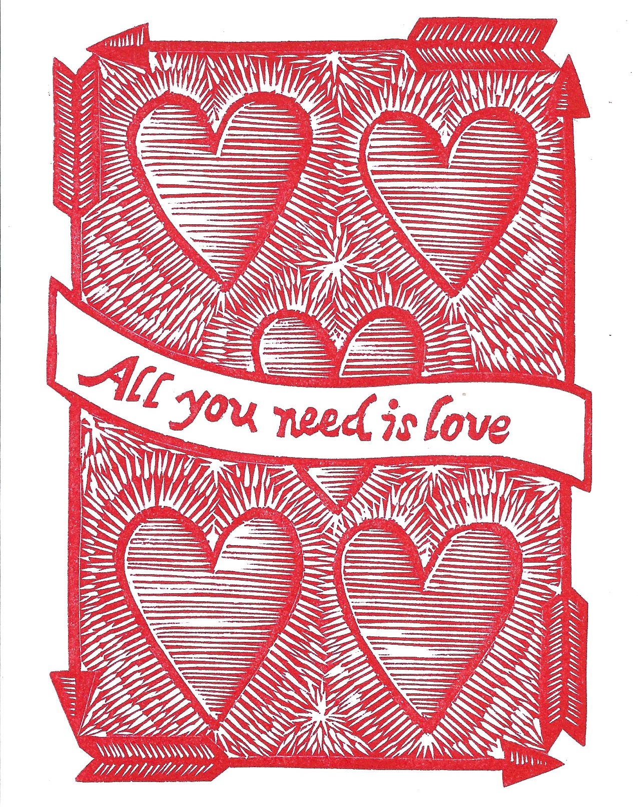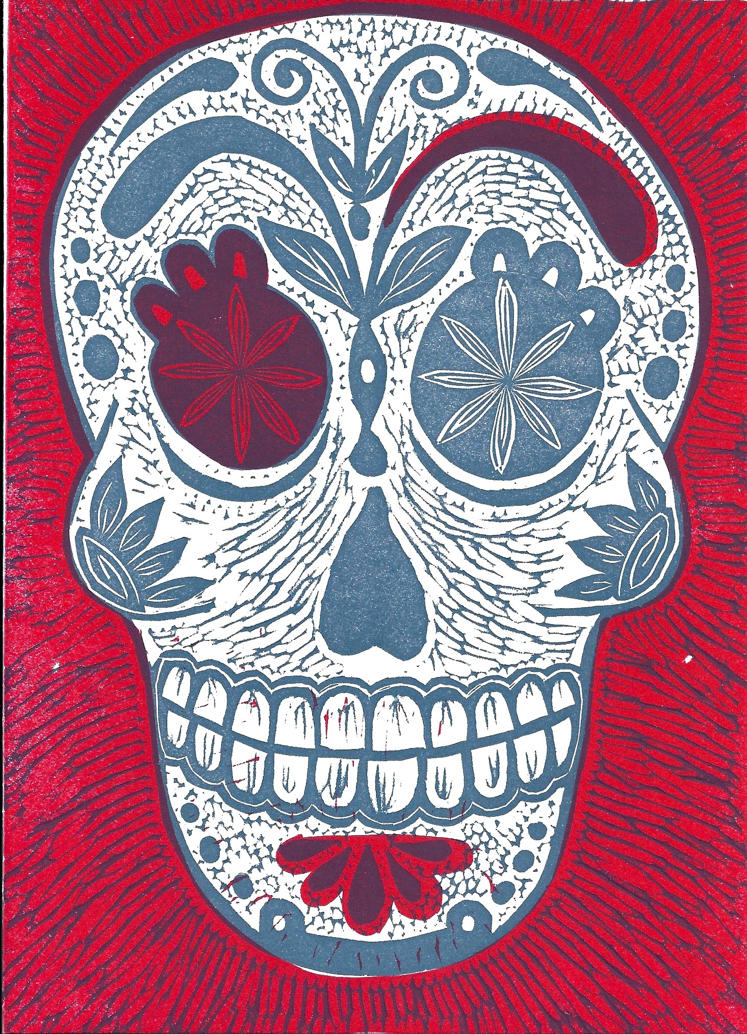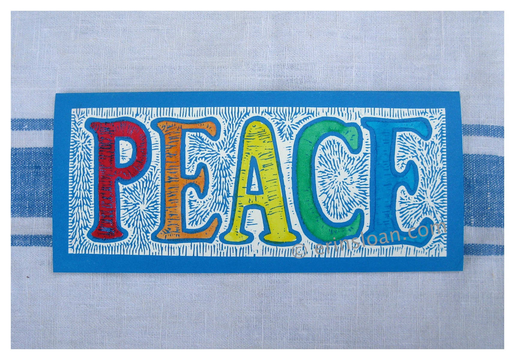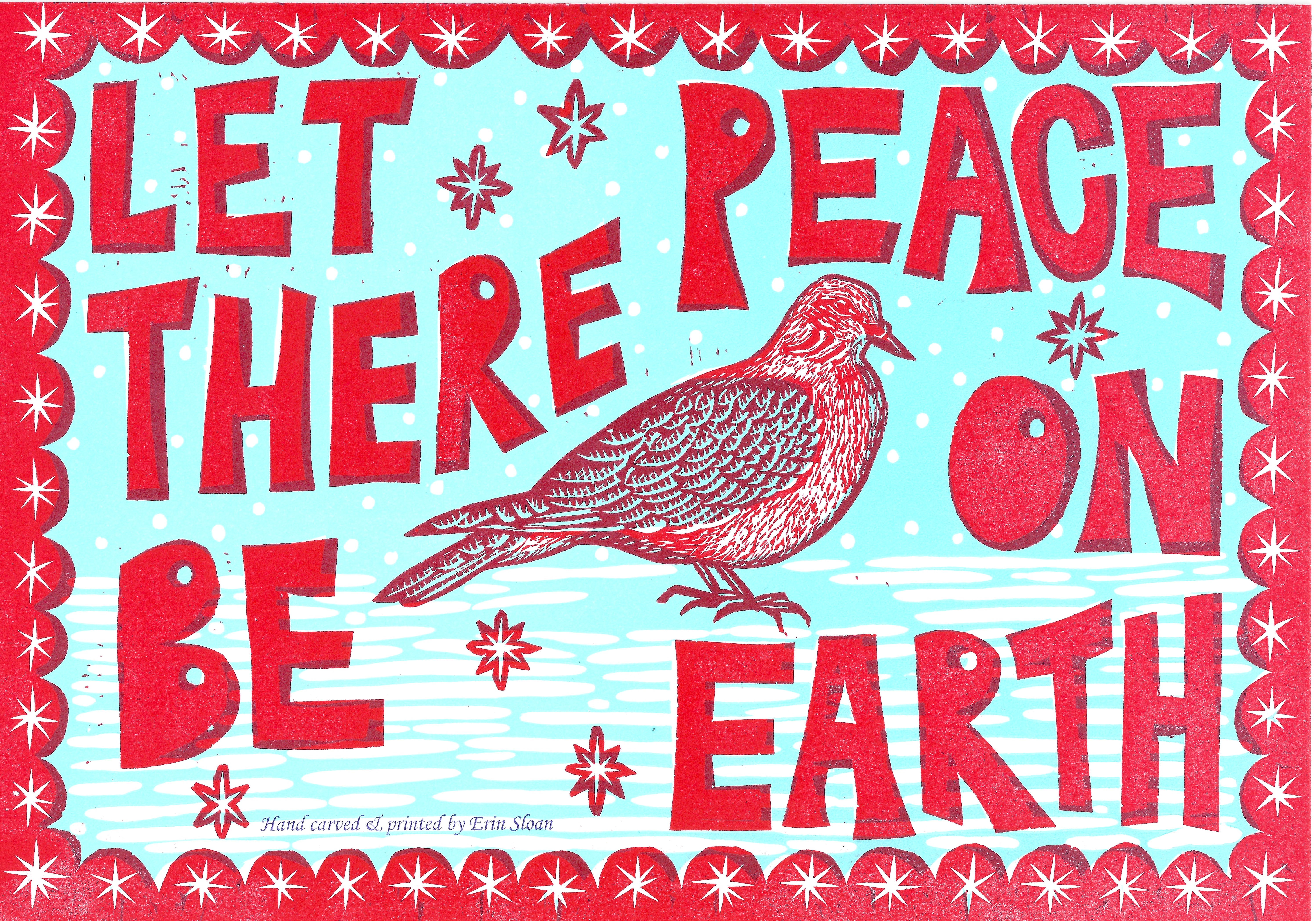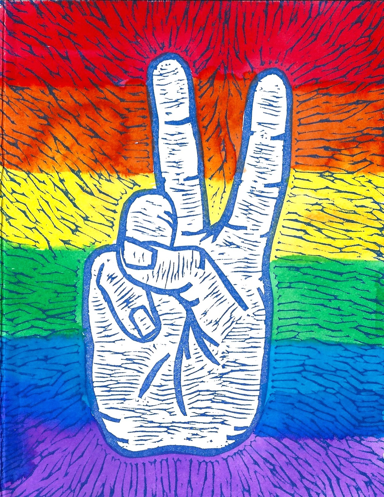 New Rainbow linoleum carving — hand watercolored. Ganesha Moss Green Cherry Blossoms Green Dianthus Red Calavera Peonies Our Lady of Guadalupe Cherry Blossoms Bees on Honeycomb American Finch The Dodo Bird Valentine’s Card Peace for All Heart in my Hand Snowy Dove Orange Calavera Snowman Holiday Angel Like Loading...